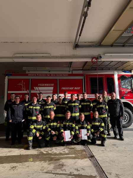 Am Samstag, dem 11. April 2026, stellten sich insgesamt 17 Mitglieder der Freiwillige Feuerwehr Rust erfolgreich der Branddienstleistungsprüfung in Bronze.