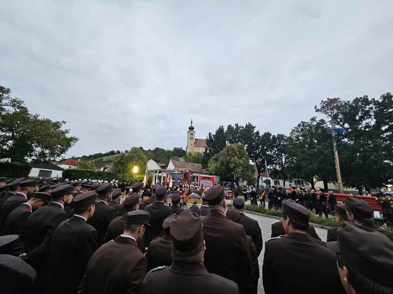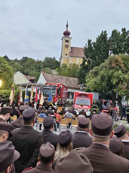 Eine Abordnung der Freiwilligen Feuerwehr der Freistadt Rust nahm am Samstag, den 27.09.2025 bei der Fahrzeugsegnung des neuen Wechselladerfahrzeug-Kran und Versorgungsfahrzeug der Freiwilligen Feuerwehr Donnerskirchen teil.