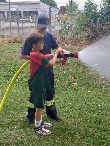 Und natürlich durfte das Spritzen mit dem Feuerwehrschlauch nicht fehlen – ein echtes Highlight!