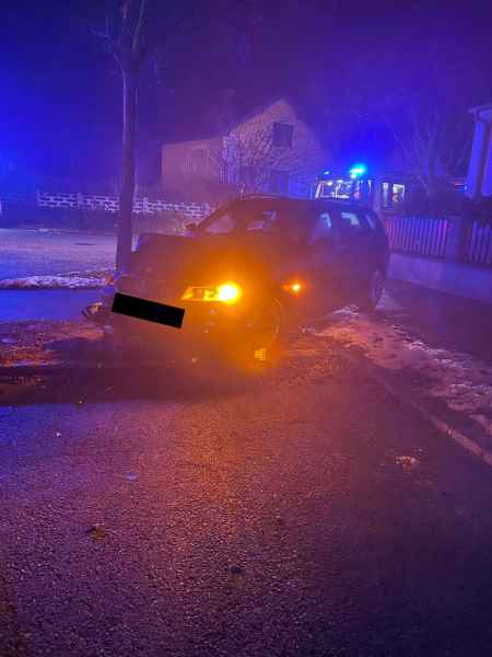 Aufgrund extremer Straßenglätte kam ein PKW von der Fahrbahn ab und prallte gegen einen Baum. Unsere Einsatzkräfte sicherten umgehend die Unfallstelle ab.