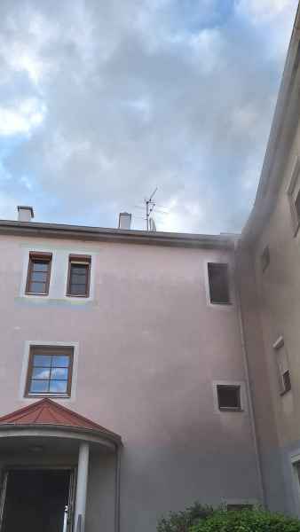 Beim Eintreffen unserer Einsatzkräfte drang bereits dichter, schwarzer Rauch aus der Brandwohnung.