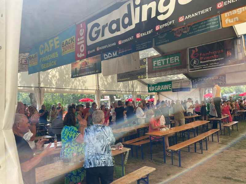 Der traditionelle Frühschoppen am Sonntag begann mit einer ökumenischen Feldmesse. Anschließend sorgte der Musikverein der Freistadt Rust, wie gewohnt für beste Stimmung.