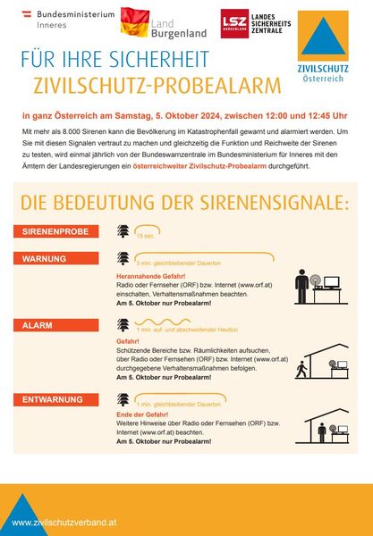 Wie in jedem Jahr findet auch heuer wieder der Zivilschutz-Probealarm am ersten Samstag im Oktober statt. (05.10.).
