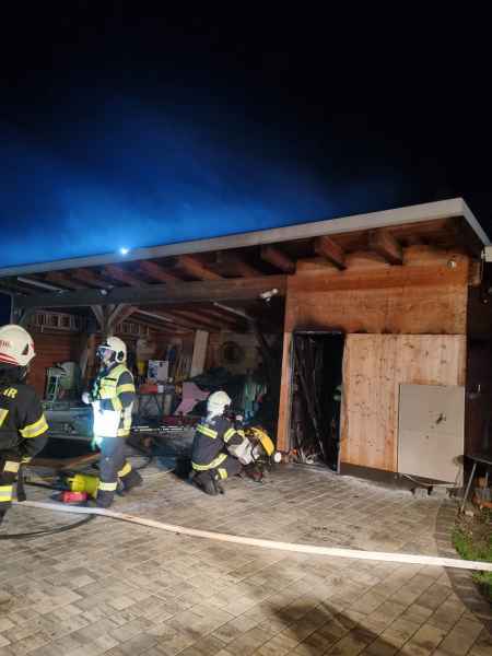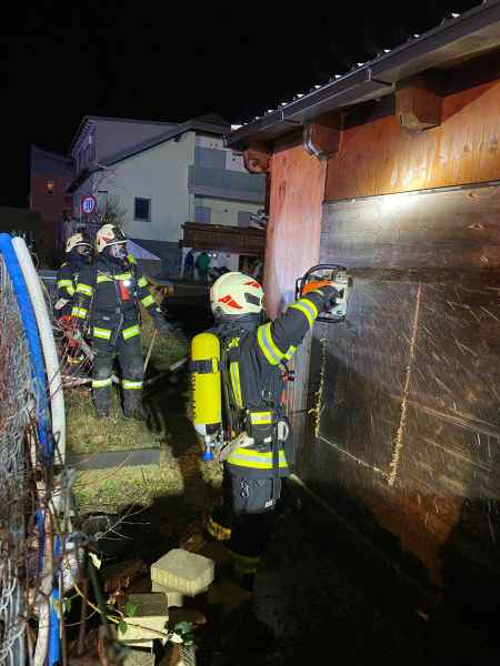 Nach kurzer Lagebesprechung mit dem örtlichen Einsatzleiter, wurde im Einsatzleitfahrzeug eine Einsatzleitstelle eingerichtet. Der Atemschutztrupp TLF 2000 schaffte mittels Rettungssäge auf der Rückseite des Schuppens eine Abluftöffnung. Der Atemschutztrupp LFBA löste den eingesetzten Atemschutztrupp von Oggau ab und begann mit dem ausräumen des Schuppens.