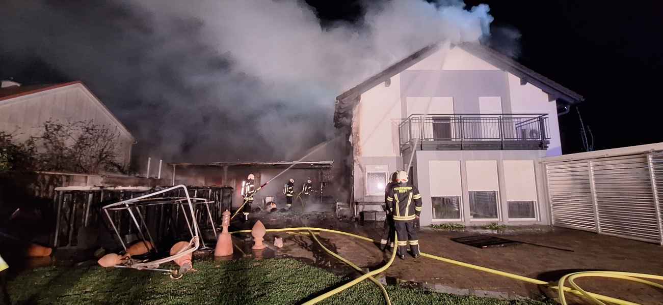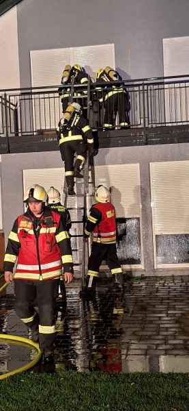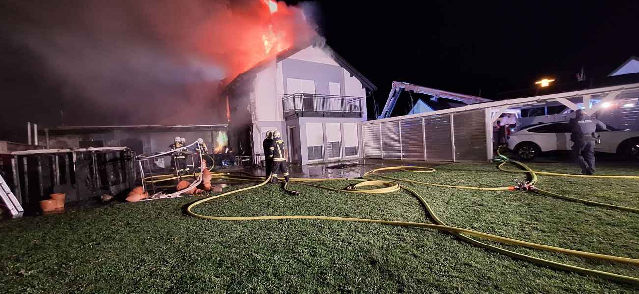 Beim Eintreffen der Feuerwehr Freiwillige Feuerwehr Oggau wurde von dieser umgehend ein zweiter Außenangriff vom Nachbargrundstück unter schwerem Atemschutz durchgeführt.