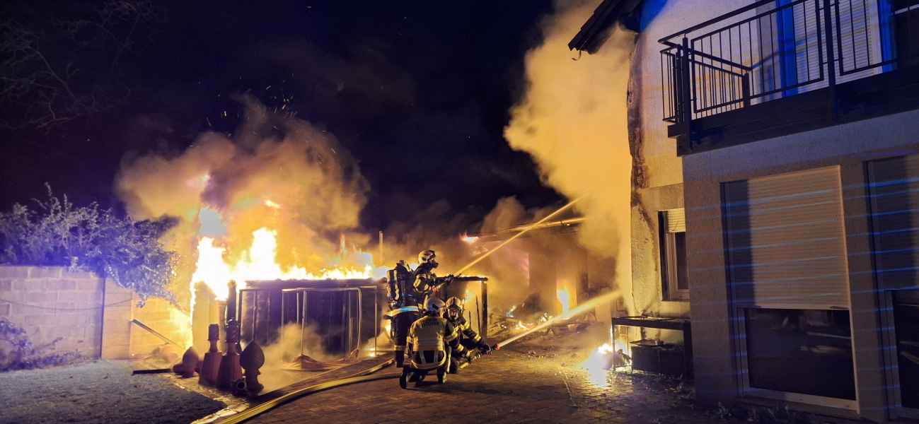 Gegen 4:45 Uhr konnte Brand aus gegeben werden. Im Anschluss wurden Nachlöscharbeiten durchgeführt. Außerdem wurden die Speicherakkus der PV-Anlage in ein Wasserbecken zur Kühlung getaucht.