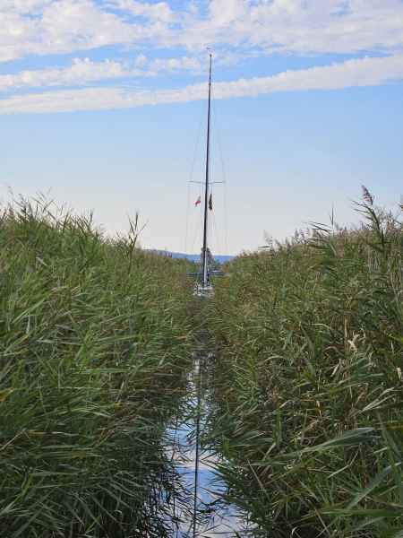 Innerhalb kürzester Zeit rückte eine Bootsbesatzung mit dem Mehrzweckboot und Zille Richtung Einsatzort aus. Das Segelboot blieb aufgrund des dichten Schilfes und des niedrigen Wasserstandes im sogenannten 1000er Kanal stecken. Mithilfe der Zille konnte das Segelboot aus dem Kanal auf das offene Wasser gezogen werden und das Segelboot konnte die Fahrt fortsetzen.