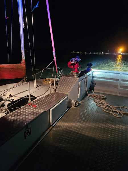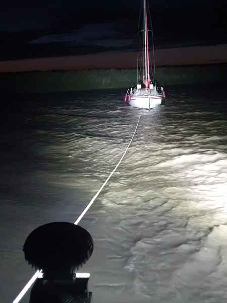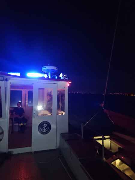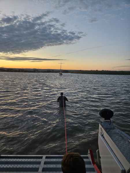 Aufgrund des niedrigen Wasserstandes war ein Segelboot nördlich vom Yachtclub auf Grund gelaufen. Wegen des geringen Wasserstandes (30cm) konnte die Besatzung unseres MZ- Bootes nicht bis zum Segelboot fahren, daher musste ein Mitglied die letzten Meter zu Fuß durch den Schlamm gehen.