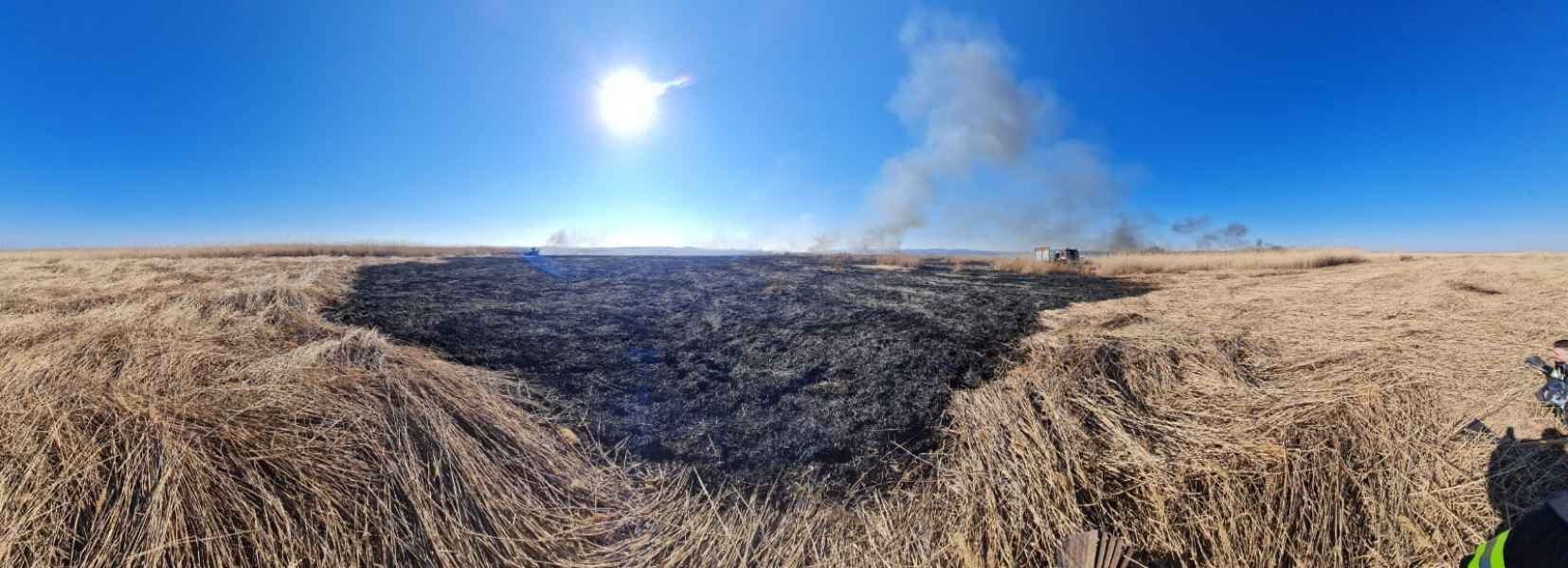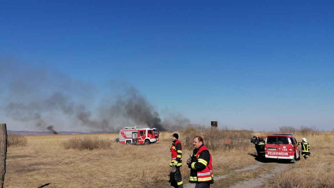 Nach zwei Löschzyklen aus der Luft konnte um 17:40 Uhr Brand aus durch die Einsatzleitung gegeben werden. Ca. 25 Hektar Schilf sind davon betroffen, verletzt wurde bei diesem Einsatz niemand.