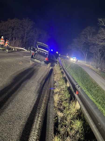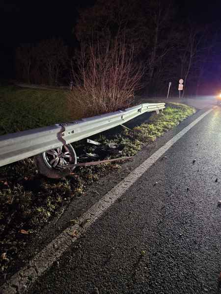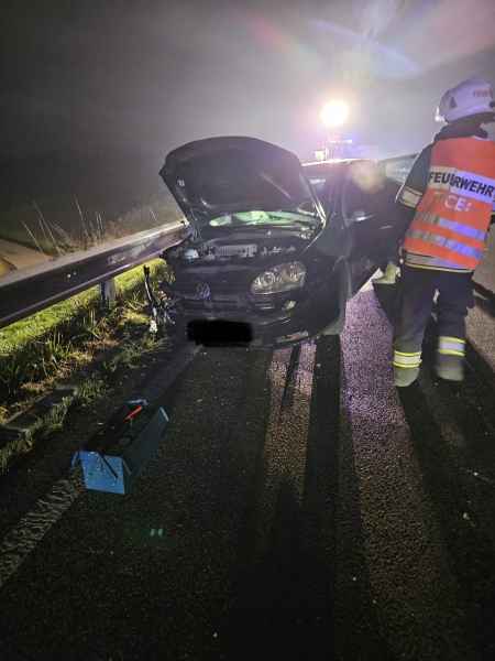 Aus unbekannter Ursache touchierte ein PKW mit einer Leitschiene, weshalb das Fahrzeug fahruntauglich auf der Gegenfahrbahn liegen blieb.