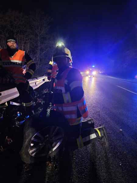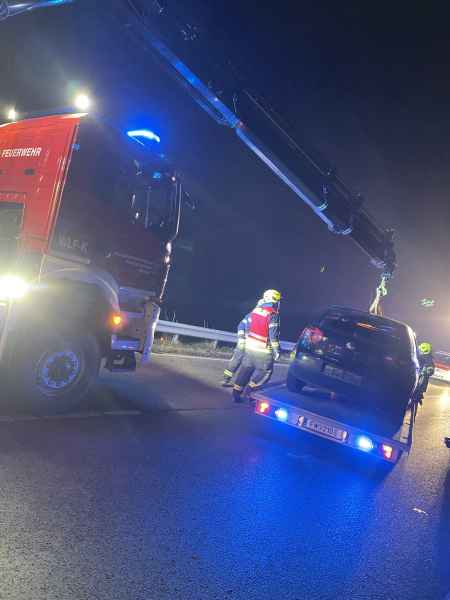 Unsere Einsatzkräfte sicherten die Unfallstelle ab, leuchteten diese aus und bauten einen Brandschutz auf. Aufgrund der starken Beschädigung des PKWs war eine Bergung ohne Kran nicht möglich. Daher wurde die Stadtfeuerwehr Eisenstadt unmittelbar vom Einsatzleiter nachalarmiert. Nach Freigabe der Exekutive wurde der PKW mittels Kran auf den Abschleppanhänger verladen und am städtischen Bauhof gesichert abgestellt. Im Anschluss wurde die Fahrbahn gereinigt und die Unfallstelle der Polizei übergeben.