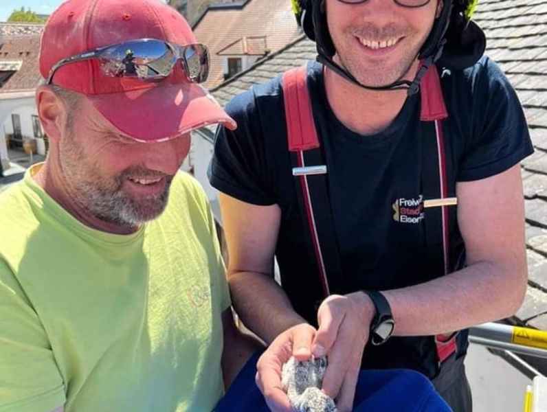 Ein Storchenbaby, welches aus einem Nest gefallen ist, landete in einer Dachrinne und konnte sich nicht befreien. Aufrgund der hohen Bauweise der Bürgerhäuser in der Ruster Altstadt musste die Freiwillige Feuerwehr Eisenstadt mittels Teleskopmastbühne nachalarmiert werden. Schlussendlich konnte das Storchenbaby dem Storchenverein Rust zur weiteren versorgen übergeben werden.