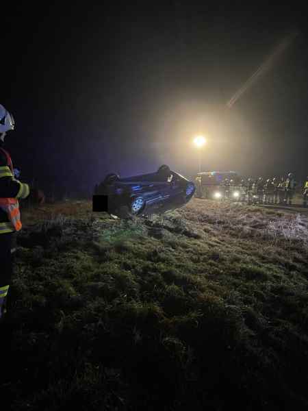 Gemeinsam mit der Feuerwehr Oslip wurde die Einsatzstelle abgesichert, die Beleuchtung und der Brandschutz aufgebaut. Nach Freigabe der Exekutive wurde das Fahrzeug mittels Seilwinde auf die Räder gestellt und nach Rücksprache mit dem Besitzer und der Polizei gesichert auf dem daneben befindlichen Feldweg abgestellt. Die verunfallte Person wurde vom Rettungsdienst versorgt und kam ohne Verletzungen mit dem Schrecken davon.