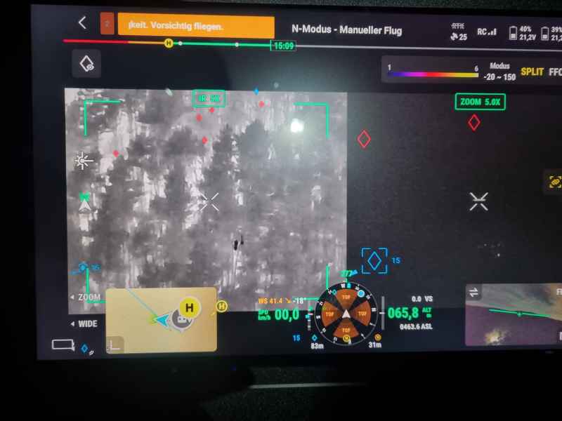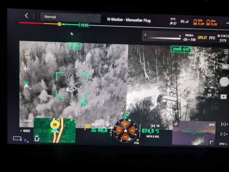Nach wenigen Minuten rückten vier Drohnenpiloten mit dem Kommandantenfahrzeug (KDTF) und dem Einsatzleitfahrzeug (ELF) in Richtung Einsatzort aus. Nach kurzer Lagebesprechung im Feuerwehrhaus Marz wurde unser Team von der Feuerwehr Marz in das betroffene Waldgebiet gelotst.Da es im Wald keinen sicheren Start und Landeplatz für den Drohneneinsatz gegeben hat, musste auf einen Parkplatz der S31 ausgewichen werden. Nach kurzer Zeit konnten wir bereits Glutnester lokalisieren und dem örtlichen Einsatzleiter übermitteln. Mithilfe der Wärmebildkamera welche in der Einsatzdrohne verbaut ist, konnten die Löschtrupps gezielt zu den Brandstellen gelotst werden.