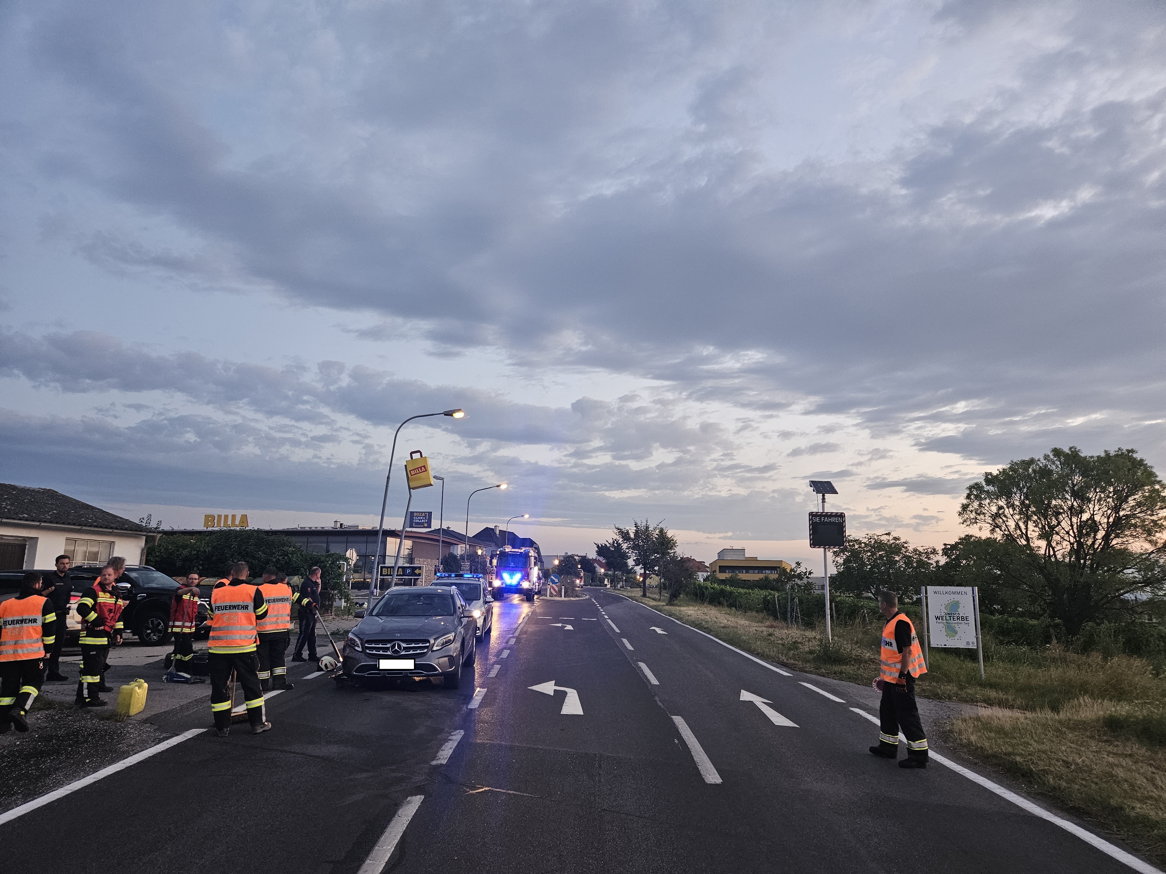 Am Samstag, den 22.07.2023 wurde die Freiwillige Feuerwehr Rust um 04:37 Uhr mittels Rufempfänger zu einer Fahrzeugbergung Höhe Billa alarmiert.